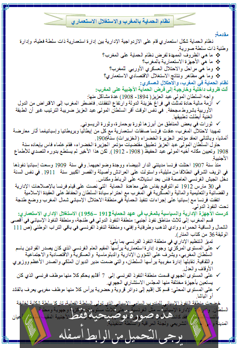 درس الاجتماعيات: نظام الحماية بالمغرب والاستغلال الاستعماري للمستوى التعليمي الأولى بكالوريا علوم رياضية.